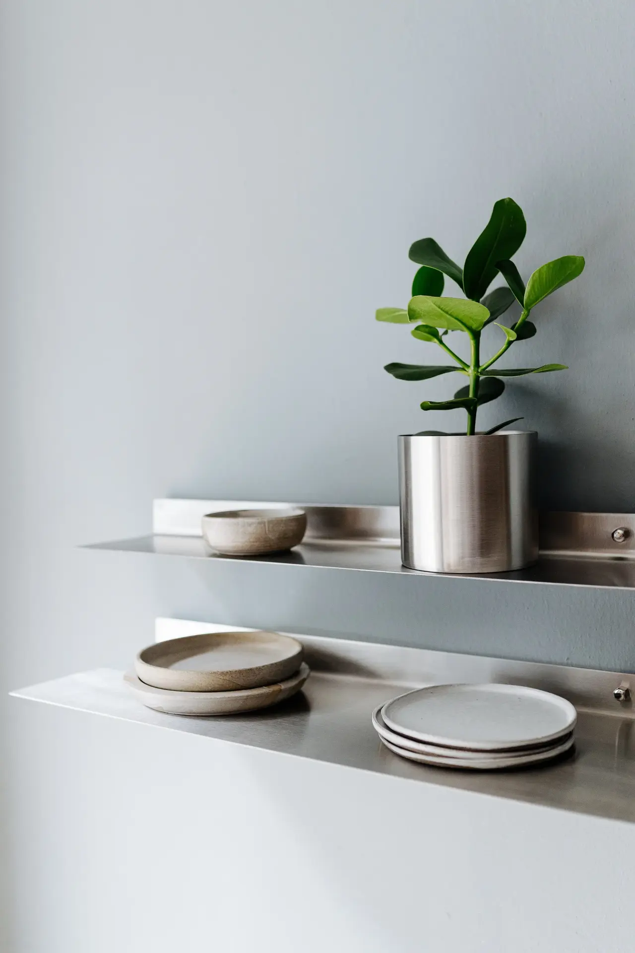 Her bir BENT 02 Paslanmaz Çelik Duvar Rafı, 2 mm kalınlığında paslanmaz çelikten titiz bir el işçiliğiyle üretilir. Orijinal seriye göre daha ölçülü bir fırçalama tekniği uygulanarak, metalin incelikli ışık yansımaları yapması ve daha dingin bir malzeme varlığına kavuşması sağlanmıştır.