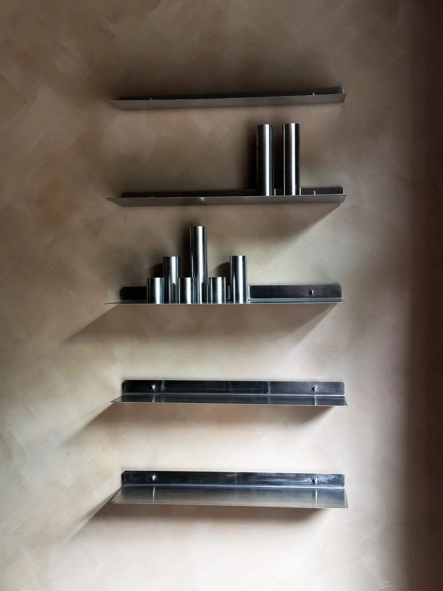 Havada Asılı Görünüm: Gizli ve Güçlü Montaj BENT 02 Paslanmaz Çelik Duvar Rafı