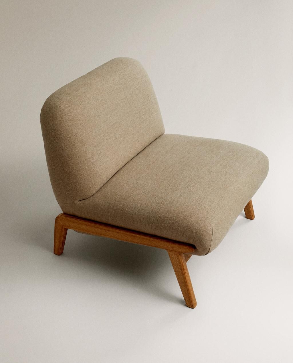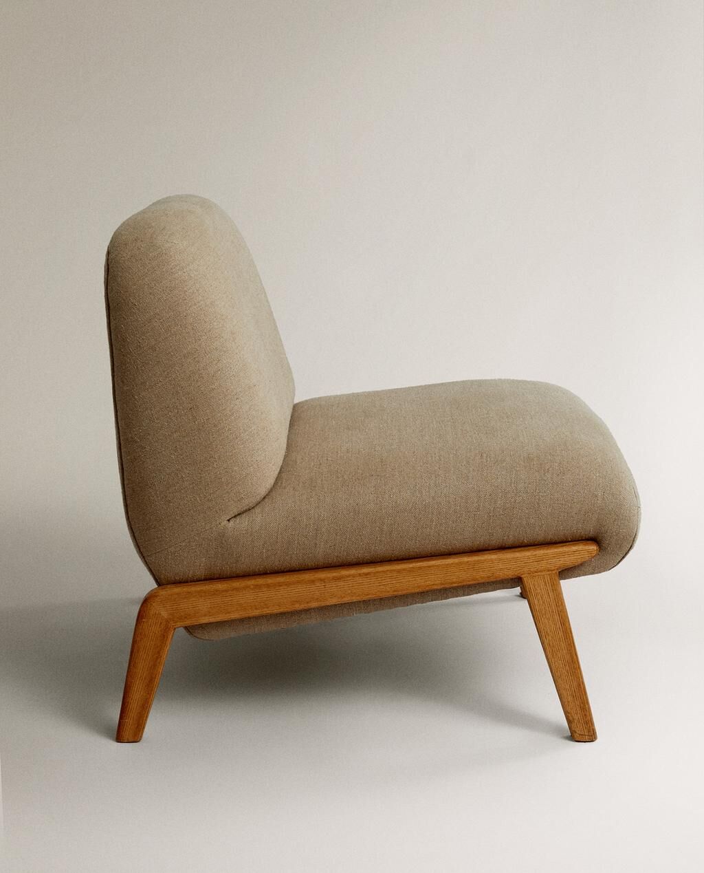 Keten kumaş döşemeli, dişbudak ağacı iskeletli, aksan berjer koltuk.