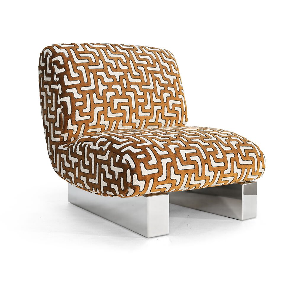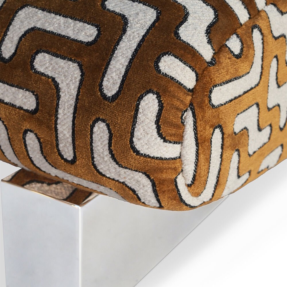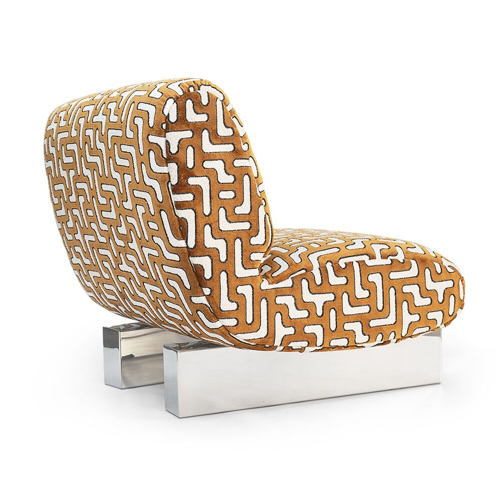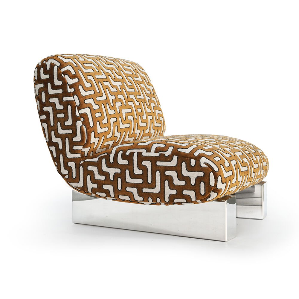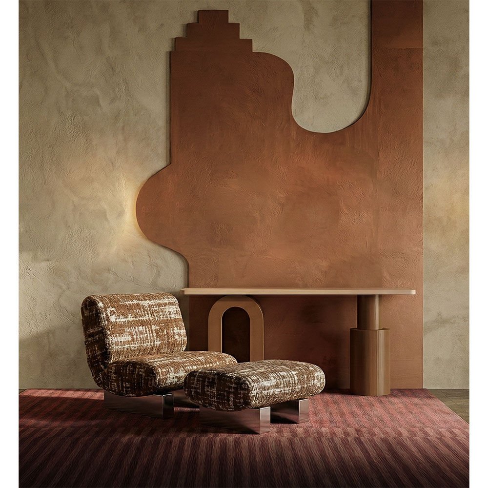 Liz Paslanmaz Çelik Berjer göz alıcı geometrik bir dokumaya sahip olan Casamance Bryce 4397 02 34 kumaş ile döşenmiştir. Dokunsal zenginliği en üst düzeye çıkaran bu döşeme, metalin serin duruşunu konforlu bir sıcaklıkla dengeler. Ayrıca, tüm COLLECTOR deri/kumaş seçenekleri veya müşterinin kendi malzemesi (COM/COL) ile kişiselleştirilebilir.
