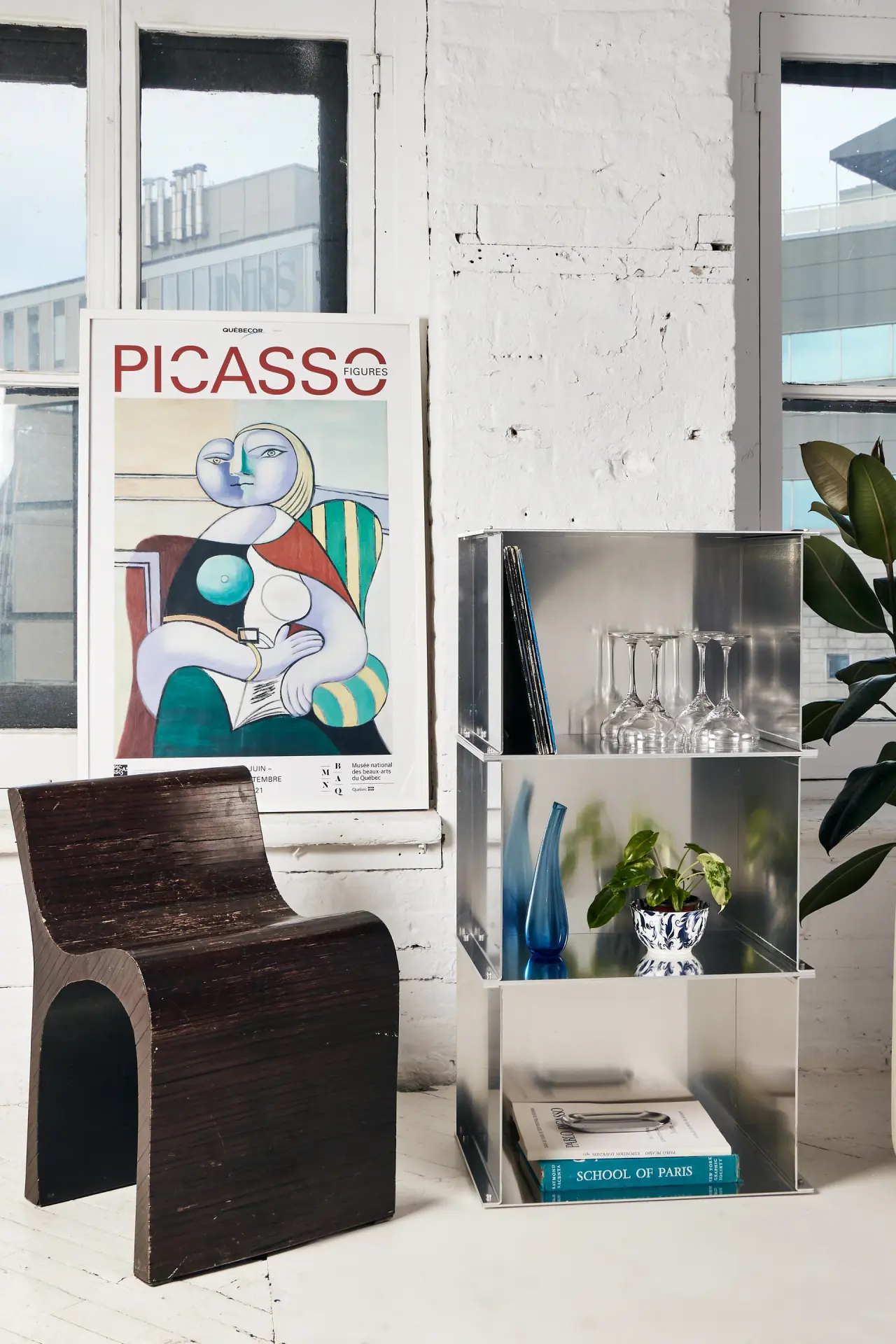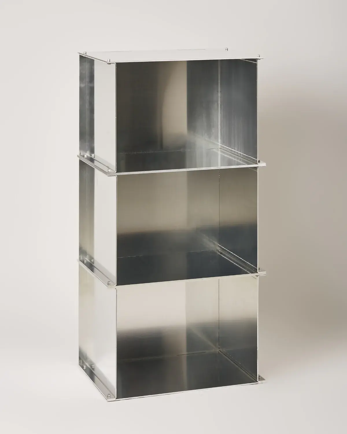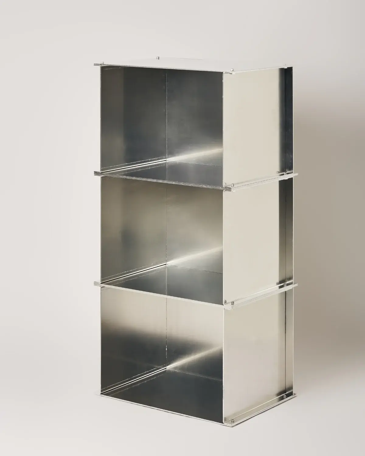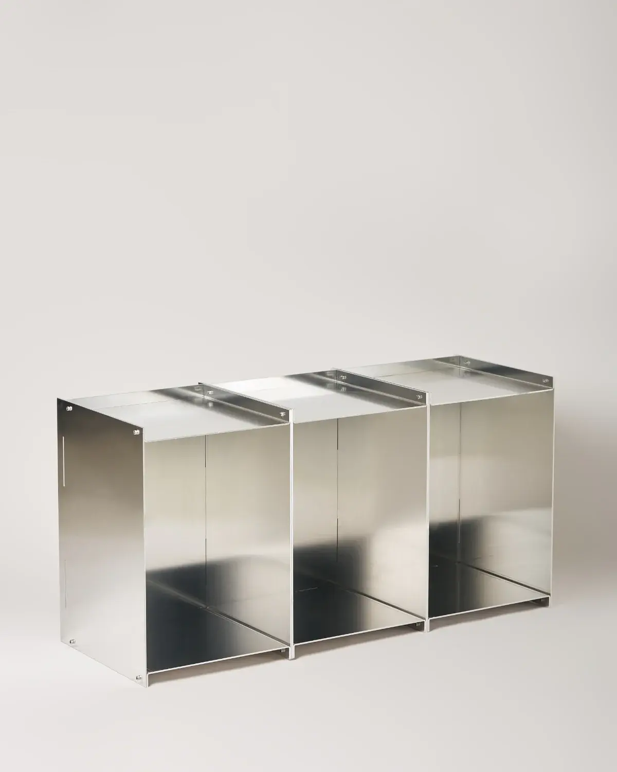 Sira Ham Alüminyum TV Ünitesi, üst üste dizilmiş üç adet M01 ünitesinin kusursuz birleşiminden oluşur. Bu dikey kompozisyon, alüminyumun soğuk yapısını kütlesel bir ağırlıkla buluşturarak hem sapasağlam hem de şaşırtıcı derecede zarif bir his uyandırır. Alışılmış TV ünitesi formlarına meydan okuyan, dikey ve odaklayıcı bir silüet yaratır.