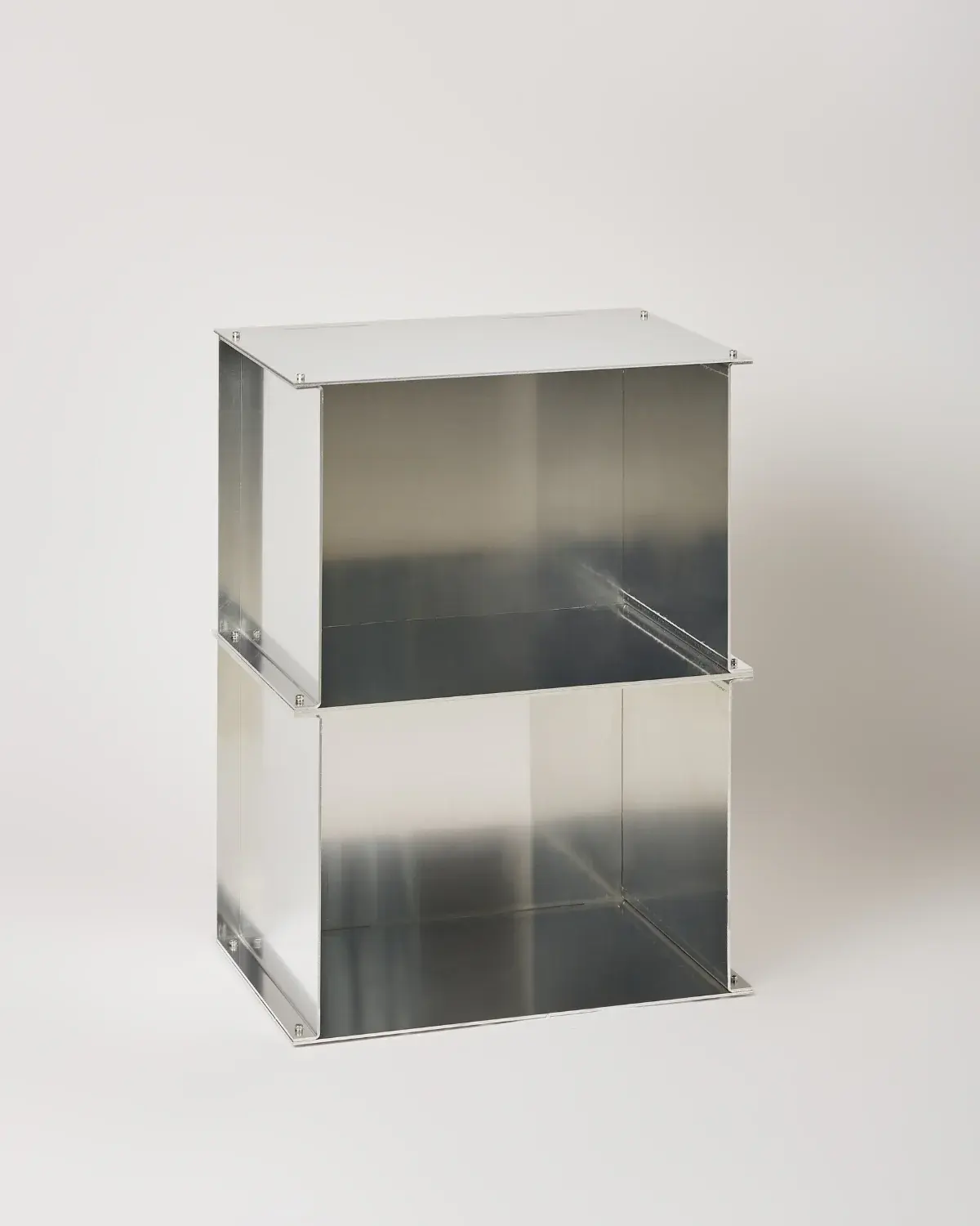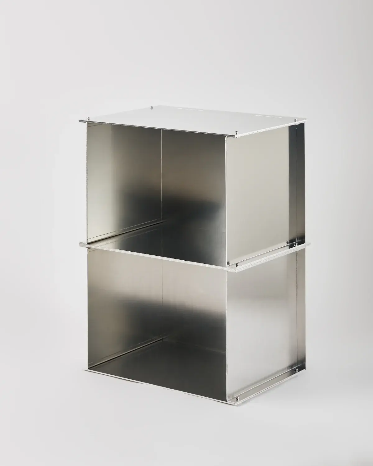 Ürün, malzemenin en doğal ve dürüst hali olan ham alüminyumdan üretilmiştir. Bağımsız parçalar, markanın imzası niteliğindeki özel donanım ve bağlantı elemanlarıyla bir araya getirilerek endüstriyel estetiği zirveye taşır.