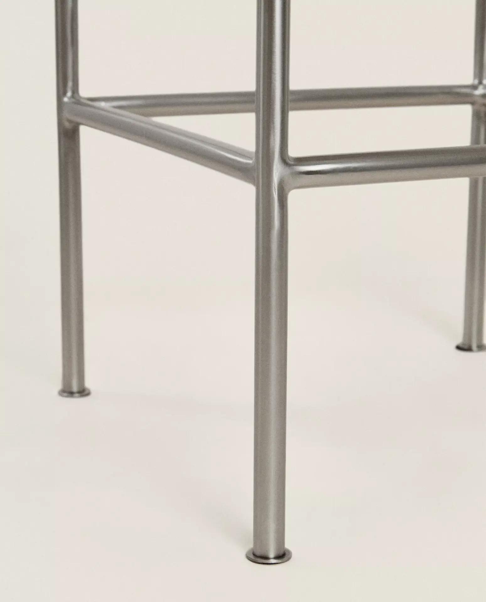Tasarımın kalbinde yer alan birinci sınıf paslanmaz çelik, tabureye uzun ömürlü ve son derece dayanıklı bir iskelet sağlar. Doğal gri tonunun getirdiği serin dokunuş ve pürüzsüz yüzey, çağdaş mekanlarda ışığı nazikçe yansıtarak ferah, aydınlık bir atmosfer yaratır.